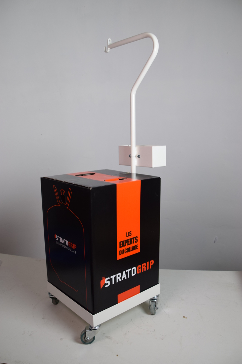 En résumé, le chariot porte-bonbonne Stratogrip facilite le stockage et le déplacement de vos bonbonnes de colle, rendant votre travail plus efficace et organisé.