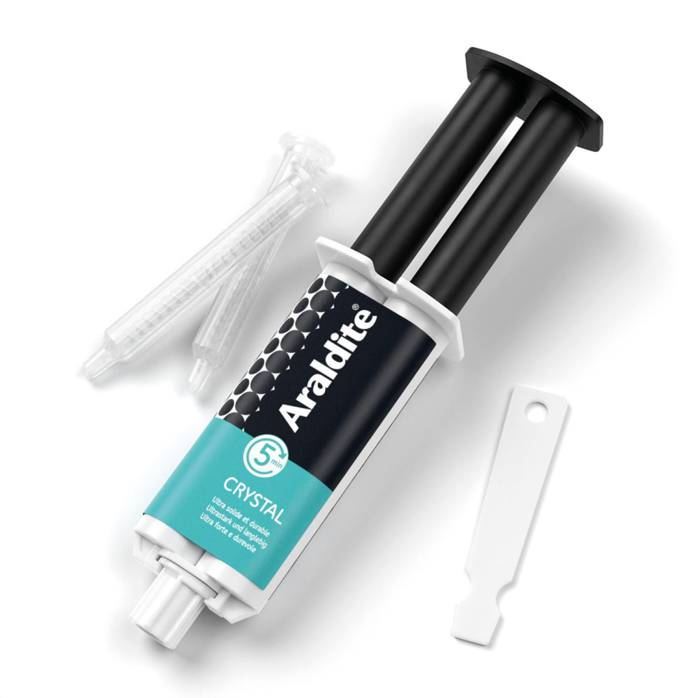 Araldite® Crystal est une colle époxy bi-composant à prise rapide. Elle offre une haute transparence. Les éléments collés sont repositionnables pendant 4 minutes et l’assemblage peut être manipulé après 20 minutes, la solidité maximale s’obtient après 3 heures. Haute résistance à l’arrachement, à l’humidité, aux huiles, produits chimiques, chocs et vibrations. Tenue en température : -30°C à +80°C.