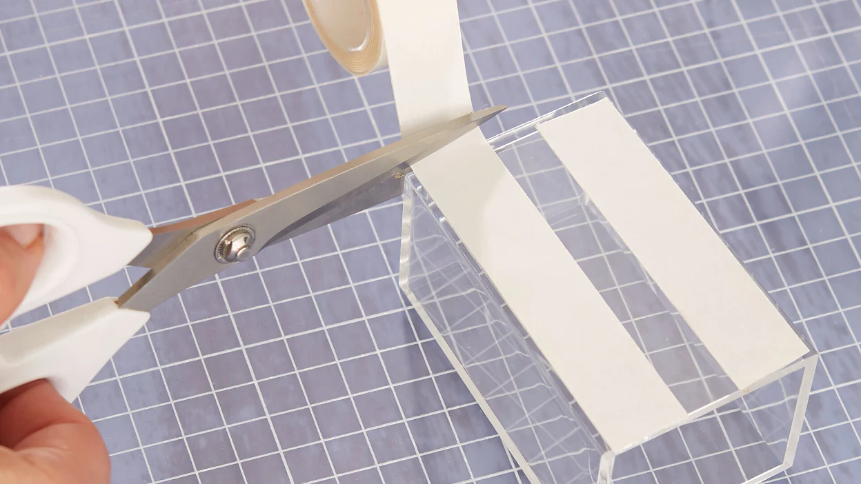 Avant d’appliquer le double face transparent, vérifier que la surface est suffisamment solide pour supporter le poids de l’objet à coller. Nettoyer ensuite la surface soigneusement avec de l’alcool ou un détergent sans silicone.