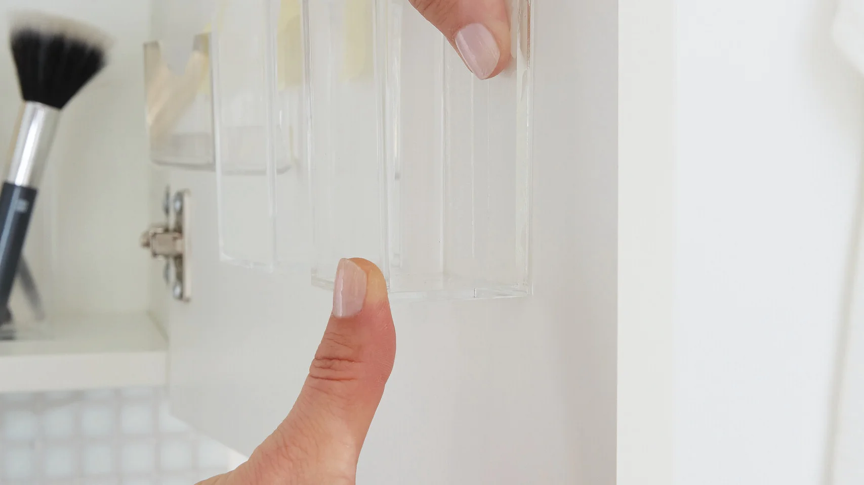 Appliquer le ruban adhésif de fixation à l’arrière de l’objet puis enlever les films de protection. Appuyer fermement pendant cinq secondes en prenant soin de ne pas toucher la surface adhésive.